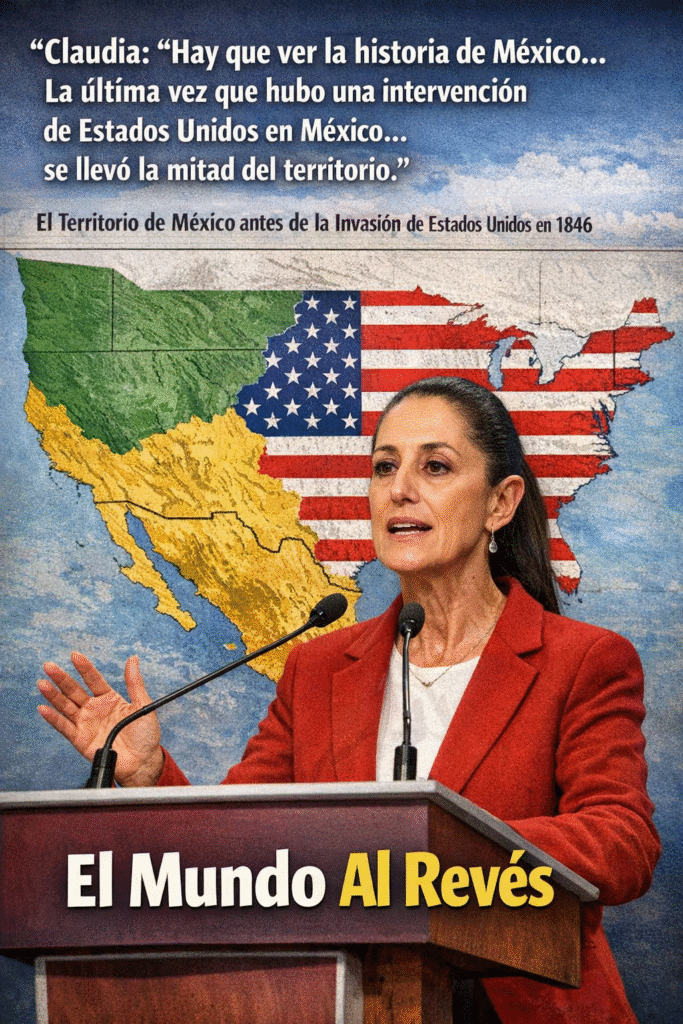 - Referencia histórica: En respuesta a las propuestas del presidente estadounidense Donald Trump de atacar instalaciones de narcotraficantes en territorio mexicano, Sheinbaum recordó que “la última vez que Estados Unidos vino a México se llevó la mitad del territorio”. Esta mención alude a la intervención de 1847 que culminó con la pérdida del 55% del territorio nacional.
